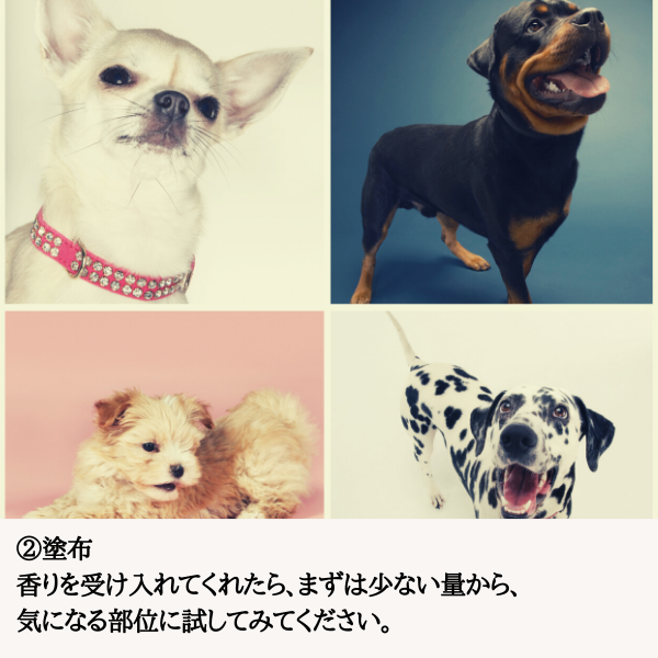 ・1歳未満のパピー(オーナー様がご使用して、香りを吸入するのは大丈夫です。)